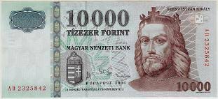 10000포린트에 등장하는 인물은 1000년에 즉위한 Saint Stephen 왕으로, 헝가리의 첫 번째 왕으로, 국가의 시조로 알려져 있습니다.